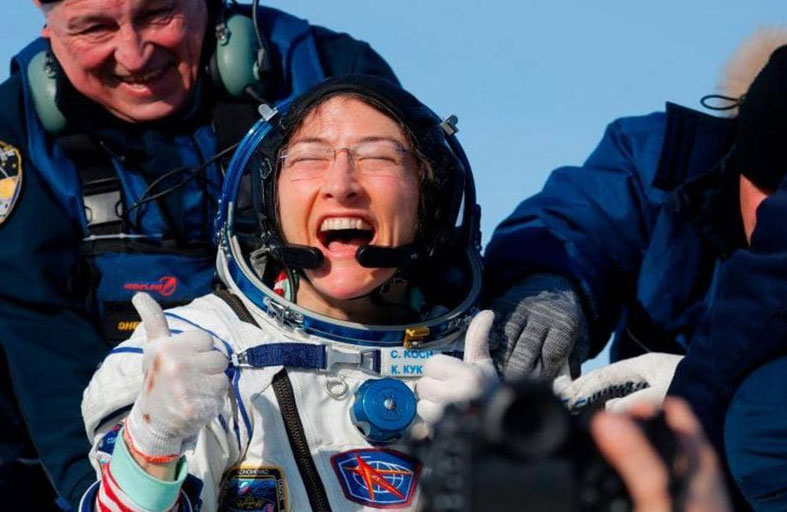 حطمت رائدة الفضاء الأميركية كريستينا كوك، التي قادت أول مهمة نسائية خالصة للسير في الفضاء في العام 2019، الرقم القياسي لأطول مدة تقضيها امرأة في الفضاء. وعادت كريستينا كوك بعد أن قضت 328 يوما في محطة الفضاء الدولية، إلى الأرض أول أول من أمس الخميس، منهية بذلك مهمة حافلة قد تقدم معلومات مهمة بشأن السفر في الفضاء البعيد.