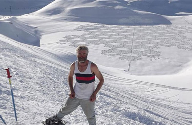 عندما لم يعد المهندس البريطاني سايمون بيك قادراً على الجري بسبب إصابات قدميه، قرر ممارسة بعض التمارين الرياضية من خلال المشي لمسافات طويلة، ولجعل الأمر أكثر إثارة للاهتمام، كان الرجل البالغ من العمر 54 عاماً يرتدي حذاء الثلج ويمشي في أنماط هندسية مميزة، مبدعاً لوحات مذهلة على الجليد.