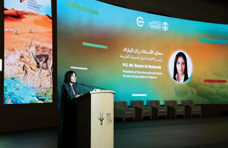 ألقت سعادة رزان خليفة المبارك، رئيسة الاتحاد الدولي لحفظ الطبيعة، الكلمة الافتتاحية في المنتدى الإقليمي العاشر لحفظ الطبيعة لدول غرب آسيا.