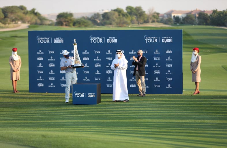 وكانت بطولة الجولف في دبي، وبطولة موانئ دبي العالمية للجولف "السباق إلى دبي" التي أقيمت تحت رعاية سمو الشيخ منصور بن محمد بن راشد آل مكتوم رئيس مجلس دبي الرياضي قد أسدلت الستار على موسم 2020 للجولة الأوروبية في نهاية الأسبوع الماضي كما كانتا أول حدثين دوليين يقامان في دبي بحضور الجمهور منذ جائحة كوفيد 19 وتم تتويج الإنجليزي مات فيتزباتريك بطلا للمرة الثانية في بطولة موانئ دبي العالمية للجولف بعد منافسات مثيرة.