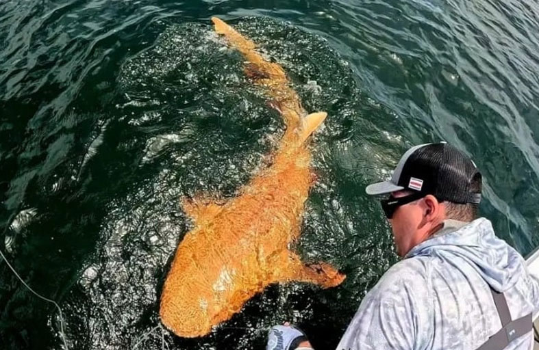 رصد سمكة قرش برتقالية بعيون بيضاء نادرة