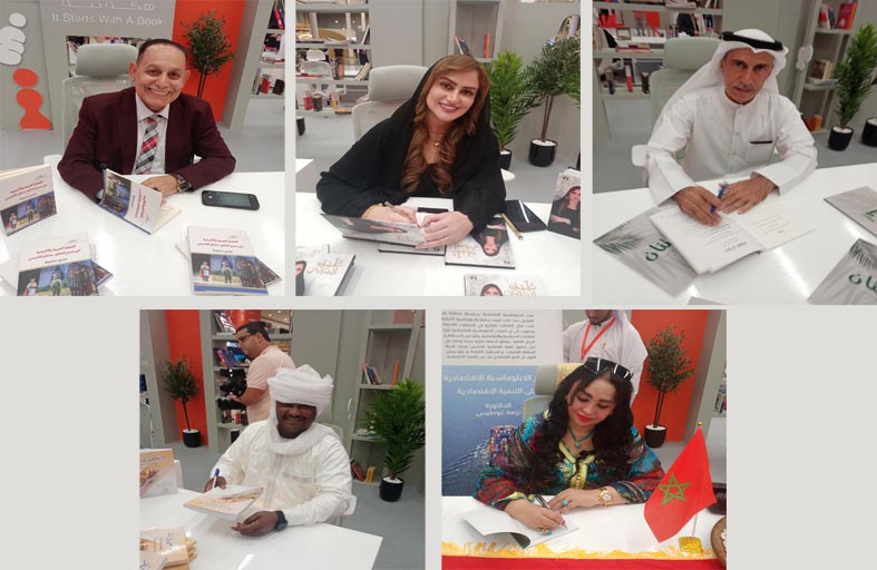 خاطبت الإعلامية ميساء عقل، قراءها من خلال كتابها المعنون " خليك إيجابي" الذي جاء ليبث الروح الإيجابية في النفوس، من خلال عناوين فرعية محفزة لتحريك النفس من الداخل والتفكير العميق ، مستنتجة هذه التجارب من حكام دولة الإمارات مستشهدة ببعض آيات القرآن الكريم التى تخدم الفكرة في تحفيز النفس والوجدان، ولغة الكتاب تميل إلى اللغة السهلة ومرادفات أقرب ما تكون للصوت وكأنها خلقت مزيج من الكلمة المسموعة والكلمة المقروءة، وربما عملها شكل في وجدانها هذا الإطار المتميز من تناول الموضوعات بحرفية ومهارة  اهتمت الدكتورة نزهة غوطيس بالمشاركة الفاعلة في ركن التوقيع بمعرض الشارقة الدولي للكتاب بكتابها الجديد" تأثير الدبلوماسية الاقتصادية على التنمية الاقتصادية" وجاء الكتاب في صورة دراسة بحثية مهمة تناولت فيها أهم القضايا الاقتصادية المعاصرة، موثقة دراستها بالمراجع والمصادر المهمة التى تعزز أراءها في هذا المجال  ومن بين الكتاب والشعراء جلست المؤلفة الصغيرة ميرة إبراهيم البلوشي على منصة التوقيع في معرض الشارقة الدولي للكتاب في دورته ٤٣ وسط الكبار، لتوقع قصتها " روز والعصا السحرية " التى تدور أحداثها حول فتاة فقدت بصرها تواجه مجموعة من المشكلات التى لا تستطيع حلها وتجاوزها إلا بمساعدة صديقتها ميرة التى تخوض هذه التحديات بثقة، القصة كتبت باللغة العربية الفصحى، مستعينة بالبيئة التى تعيش فيها وتأثيرها بها