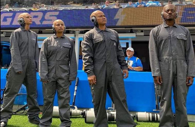 تفاجأ عدد من مشجعي كرة القدم الأميركية، الذين ذهبوا لحضور مباراة لوس أنجلوس تشارجرز وميامي دولفنز، "باقتحام" عدد من الروبوتات لملعب المباراة.
