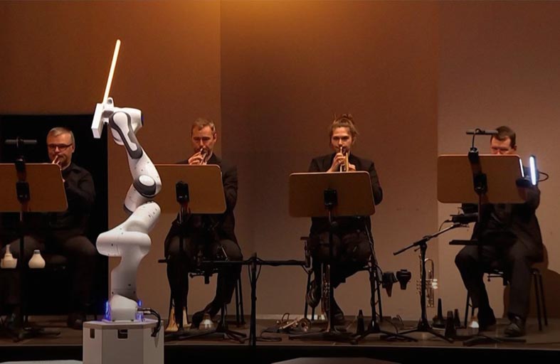 قاد روبوت ثلاثي الأذرع مصمم لتقليد قائد أوركسترا بشري، فرقة موسيقية خلال نهاية هذا الأسبوع في مدينة دريسدن الألمانية، مع موسيقى أُلّفت خصيصا له. وقاد الروبوت الذي يضم ثلاث أذرع مفصلية منفصلة تحمل كل منها عصا مشابهة للسيوف الضوئية لسلسلة "ستار وورز"، الموسيقيين خلال عرضين لأوركسترا دريسدن السيمفونية. ودُرّب الروبوت ليصبح قادرا على التعرف على وقت العزف والإشارة إلى الديناميكيات، مع قدرة الأذرع على التحرك بشكل مستقل عن بعضها البعض. وتمكّن من إعطاء لمحة عن قدراته من خلال أداء "سيميكونداكترز ماستر بيس"، وهو عمل للملحن وعازف البيانو الألماني أندرياس غوندلاخ. واستخدم الروبوت أذرعه الثلاثة لقيادة الأقسام الثلاثة للأوركسترا بشكل منفصل، الأمر الذي لم يكن ممكنا مع قائد بشري واحد. وفي حديث خلال العرض الذي أقيم الأحد، أوضح غوندلاخ أن فكرة الروبوت مستوحاة من علماء في جامعة دريسدن التقنية يطوّرون "روبوتات تعاونية" تُسمى "كوبوتس"، لا تهدف إلى استبدال البشر بل للعمل معهم.