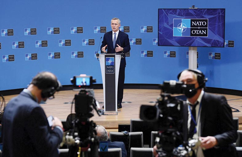 واستقبل ينس ستولتنبرج الأمين العام لحلف شمال الأطلسي ألكسندر جروشكو نائب وزير الخارجية الروسي في مقر الحلف لمحاولة نزع فتيل أسوأ التوترات بين الشرق والغرب منذ الحرب الباردة، والتي اشتعلت شرارتها بسبب المواجهة حول أوكرانيا، التي تقول الولايات المتحدة إن روسيا تستعد لغزوها. وترفض موسكو هذه الاتهامات، رغم أنها تحشد قواتها بالقرب من الحدود الأوكرانية.