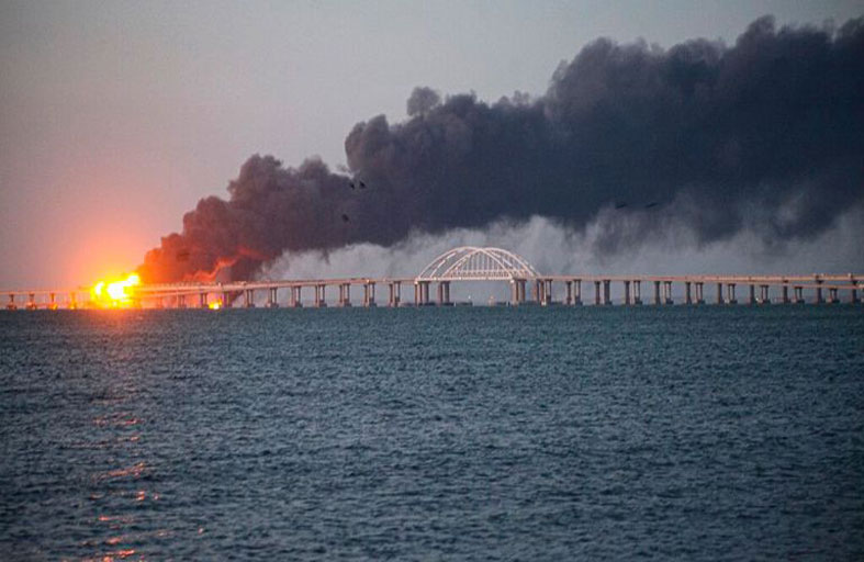 هذا الجسر الذي بُني بكلفة كبيرة بأوامر من الرئيس فلاديمير بوتين لربط شبه الجزيرة التي أعلنت موسكو ضمها بالأراضي الروسية، يُستخدم خصوصا لنقل معدات عسكرية للجيش الروسي الذي يقاتل في أوكرانيا.