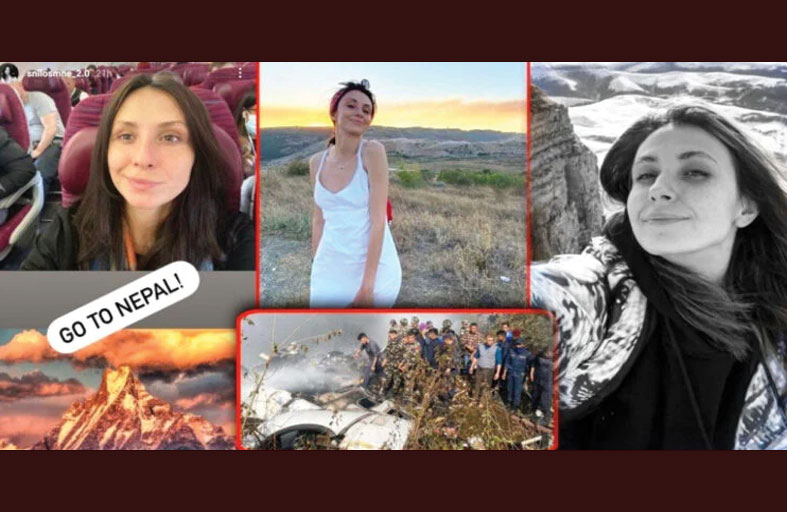 نشرت المدونة الروسية، إيلينا باندورو، 33 عاما، آخر صورة لها قبل لحظات من وفاتها بحادث تحطم الطائرة النيبالية.