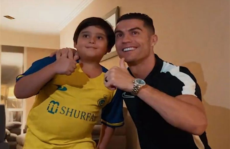 فبعد وقت قصير من انتشار الفيديو، أدخل الطفل إلى غرفة رونالدو لمقابلة نجمه المفضل والتقاط الصور معه، وفق لقطات نشرها النصر لاحقا.