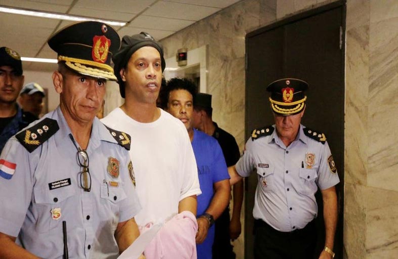 اعتقل رونالدينيو الفائز بجائزة أفضل لاعب في العالم مرتين في 6 من مارس (آذار)، برفقة شقيقه ومدير أعماله روبرتو أسيس، بعد أن حاولا دخول باراغواي بجوازات سفر مزيفة.