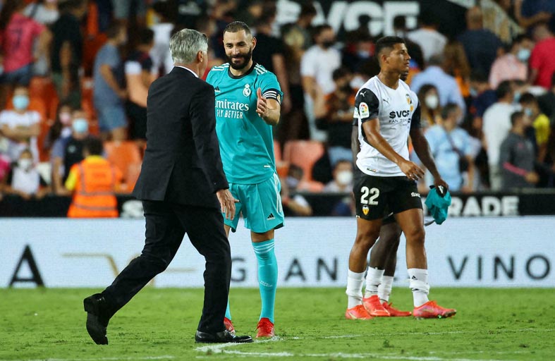 وبدا النادي الملكي في طريقه للهزيمة الأولى للموسم حين تخلف في "ميستايا" حتى الدقيقة 86، قبل أن ينتفض بتسجيله هدفين في غضون دقيقتين عبر البرازيلي فينيسيوس جونيور والفرنسي كريم بنزيمة اللذين رفعا رصيديهما الى 5 و6 أهداف في صدارة ترتيب هدافي "لا ليغا".