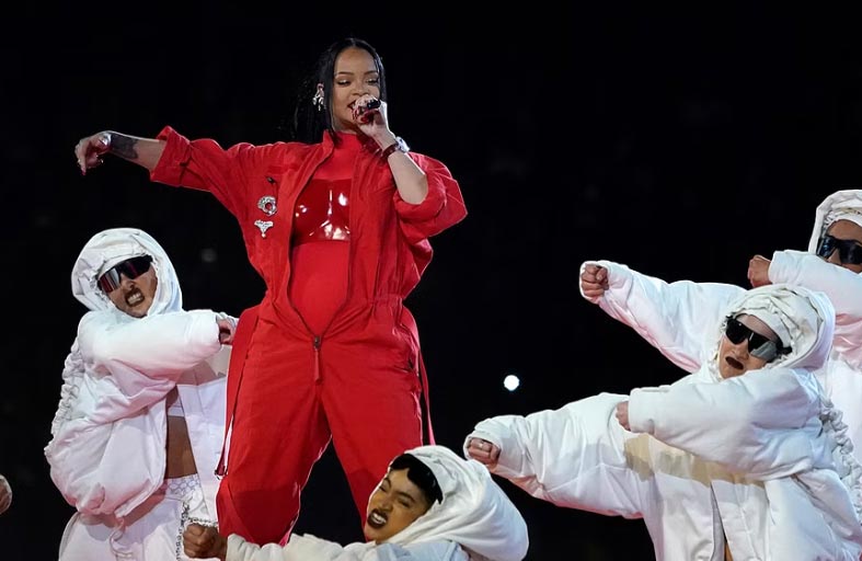 فاجأت المغنية ريهانا، جمهورها، بنبأ حملها والذي كشفت عنه للمرة الأولى، الليلة الماضية خلال أدائها عرض "سوبر بول 2023". بي بيتر هاف ماي ماني".
