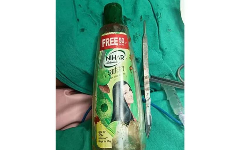 رغم أنها ضخمة الحجم، إلا أن زجاجة كبيرة الشكل شقت طريقها إلى معدة رجل في الهند واستقرت فيها.
