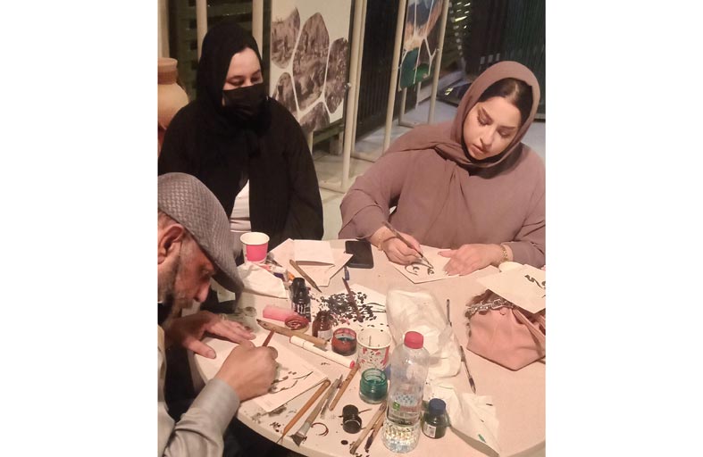 يجلس الفنان التشكيلي الخطاط عبد الفتاح ملحة في ركن الخط العربي ليقدم نموذجاً حياً لمعنى التصالح والتسامح مع اللغات، من خلال كتابة أسماء الزوار العرب وغير الناطقين بالعربية بالخط العربي المميز والمتداخل بشكل إبداعي وفني يدهش الجمهور، وحول هذا الركن يؤكد الخطاط عبد الفتاح ملحة أن وجوده في اكسبو 2020 فرصة عظيمة وشرف كبير أن أضيف جزءاً بسيطاً من التراث ضمن مجموعة مختارة من المهتمين بالحفاظ على التاريخ والتراث الشعبي لدولة الإمارات التى عشت فيها قرابة الأربعين عاماً، وخلال هذه الفترة الطويلة تمكنت من نحت أسمي بين جهابذة فن الخط العربي وصقلت هذه الموهبة بالاطلاع والتدريب من خلال الدورات التدريبية وشاركت في العديد من المحافل المحلية والدولية، وذلك بالعبارات العربية المعروفة.