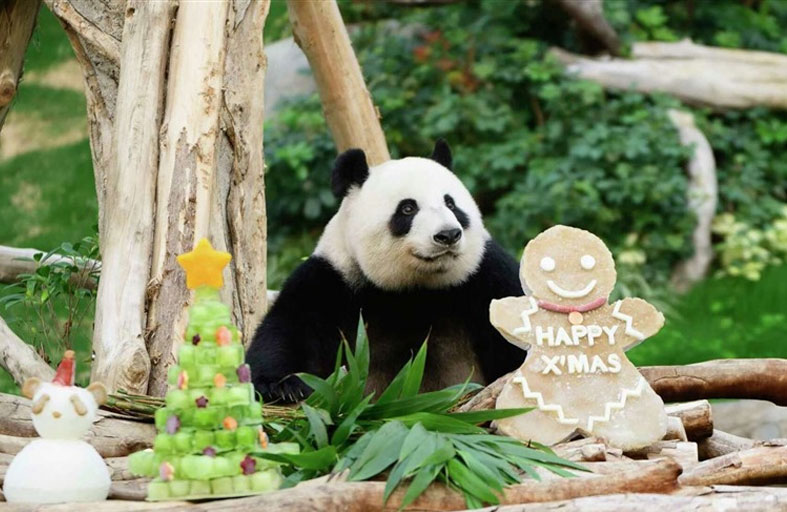 احتفل زوج من الباندا، هما "آن آن" و"كي كي" وكلاهما 5 أعوام، بأول عيد ميلاد "كريسماس" لهما في حديقة بهونغ كونغ، حيث تناولا بعض الأطعمة المميزة وظهرا لطيفين أمام عدسات الكاميرات.