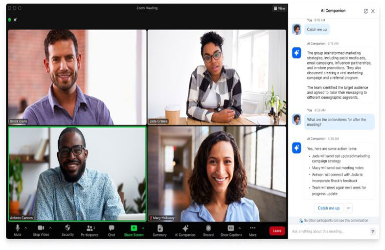 زووم تضيف خاصية الذكاء الاصطناعي إلى المحادثات