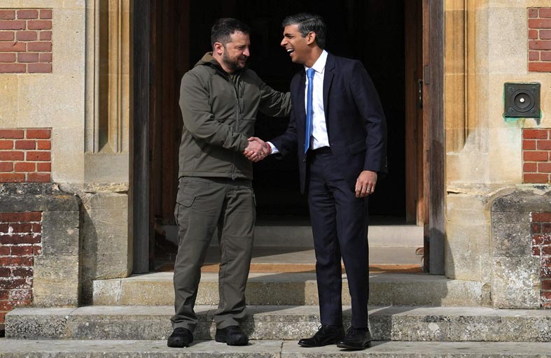 وصل الرئيس الأوكراني فولوديمير زيلينسكي إلى لندن على ما ذكرت رئاسة الحكومة البريطانية، حيث سيلتقي رئيس الوزراء ريشي سوناك الذي وعد بتسليم “مئات” الصواريخ المضادة للطائرات والمسيرات الهجومية إلى كييف قريباً. وقال الرئيس الأوكراني في تغريدة، معلنا مغادرته إلى لندن التي سبق أن زارها في شباط/فبراير “كانت المملكة المتحدة رائدة في تزويدنا بمعدات برية وجوية إضافية. وسيستمر هذا التعاون». من المقرر أن يلتقي زيلينسكي مع ريشي سوناك في تشيكرز، المقر الصيفي لرئيس الوزراء الذي أعلن قبيل وصول الرئيس الأوكراني عن مساعدة عسكرية جديدة إلى كييف. ستسلم المملكة المتحدة أوكرانيا “مئات” الصواريخ المضادة للطائرات والمسيرات الهجومية التي يصل مداها إلى أكثر من 200 كيلومتر.