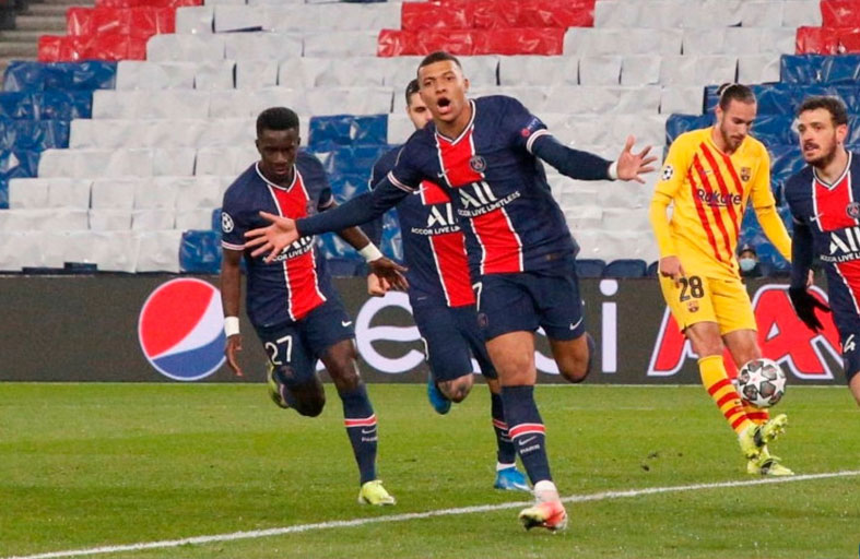 وهيمن برشلونة على الشوط الاول وأهدر العديد من الفرص حيث كان الحارس الكوستاريكي كيلور نافاس سدًا منيعًا، قبل أن يمنح كيليان مبابي صاحب الهاتريك في الذهاب التقدم لاصحاب الارض بعد مرور نصف ساعة من ركلة جزاء.