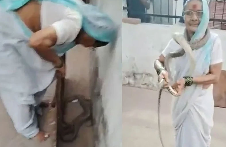 شهدت منطقة بوني الهندية مشهداً لافتاً حصد تفاعلاً عبر المنصات، وذلك بعدما ظهرت جدة تبلغ من العمر 70 عاماً، وهي تمسك بثعبان ضخم بيدين عاريتين بكل هدوء وثقة، في قرية كاسار أمبولي التابعة لمنطقة مولشي.