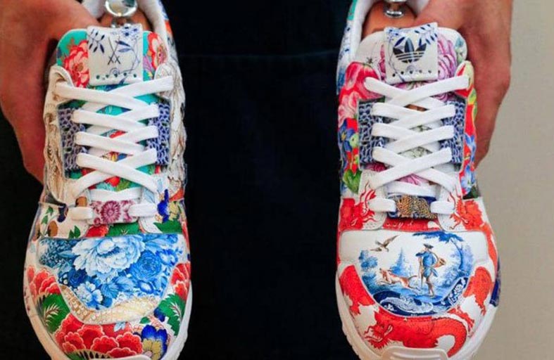 وقد استوحي تصميم هذا الحذاء من أحذية "زد إكس 8000" التي طرحتها "أديداس" للبيع ولقيت إقبالا شعبيا كبيرا. وتولى حرفيون من "ميسن" تلوين الحذاء، ثم لصقوا بعد ذلك على فردتيه قطعا خزفية مزينة أيضا.
