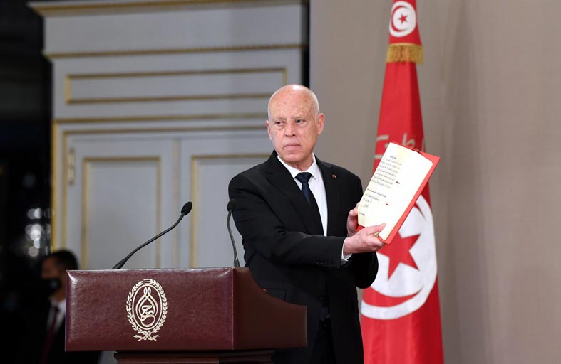 قدم الرئيس التونسي درسا دستوريا جديدا موجها للحكومة والبرلمان، وذلك في فصل جديد من الصراع الدائر بين الرئاسات الثلاث في تونس. فقد قال قيس سعيد، خلال إشرافه أمس الأحد، على موكب الاحتفال بالذكرى الخامسة والستين لعيد قوات الأمن الداخلي، إنه القائد الأعلى للقوات المسلحة الأمنية وليس العسكرية فقط بموجب قانون أغسطس لسنة 1982.