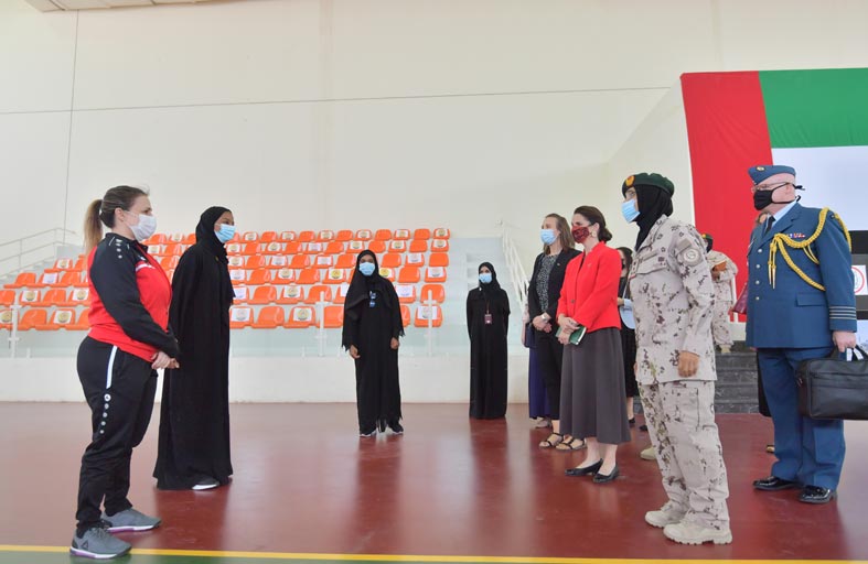 كان في استقبالها العميد الركن عفراء سعيد الفلاسي قائد مدرسة خولة بنت الأزور العسكرية و جرى بحث جهود دولة الإمارات لتمكين المرأة في المجال الدفاعي و دور المرأة الإماراتية في المجال الأمني و الدفاعي و المهام الإنسانية و مهام حفظ السلام.