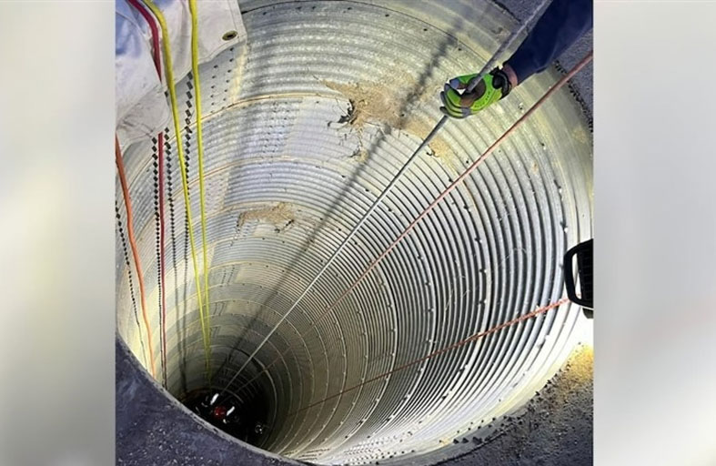وسقط المراهق، الذي لم يتم الكشف عن هويته، في إحدى فتحات العادم الخاصة بالصومعة بعمق يتراوح بين 40 إلى 50 قدماً.