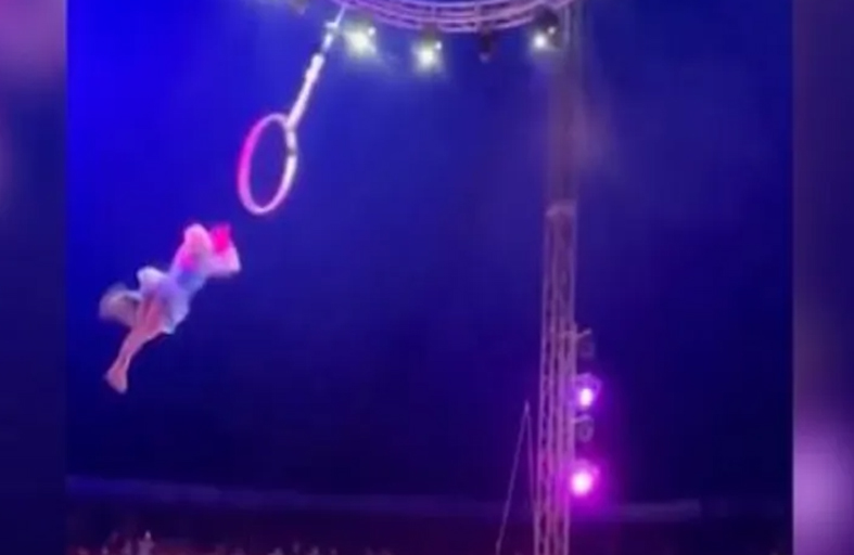 سقوط مروع للاعبة سيرك بعد أن خانها الطوق " فيديو "