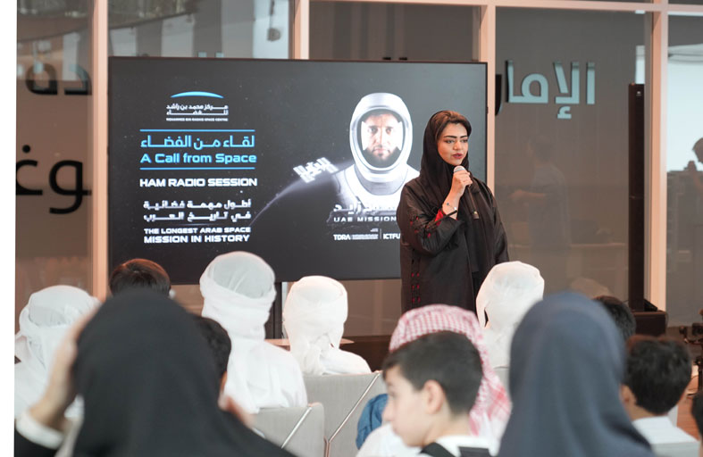 نظم مركز محمد بن راشد للفضاء، امس سادس اتصال لاسلكي مع رائد الفضاء سلطان النيادي من على متن محطة الفضاء الدولية، في مكتبة محمد بن راشد وذلك ضمن سلسلة “لقاء من الفضاء».