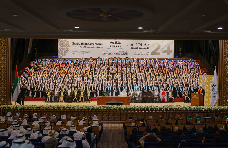 وأضاف سموه “ اليوم نشهد تخريج دفعة جديدة من أبناء جامعة الشارقة، بل نقدم دليلاً جديداً على تميز ونجاح جامعتنا في مواصلة المسيرة العلمية والتعليمية حتى وصلنا إلى ما وصلنا إليه من مرتبة علمية متقدمة بين جامعات العالم، ونعدكم ونعدُ الأجيال القادمة أيضاً أننا سنواصل الجهد والعمل الدؤوب لنساهم ونشارك في صنع مستقبل واعد يليق بالشارقة”.