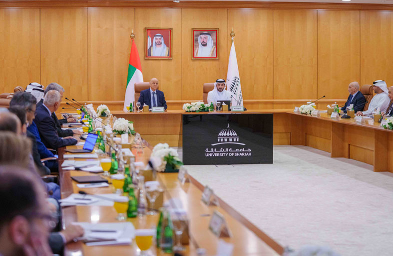 سلطان بن أحمد القاسمي يلتقي مدير جامعة الشارقة ونوابه وعمداء الكليات ومدراء المراكز والمعاهد البحثية