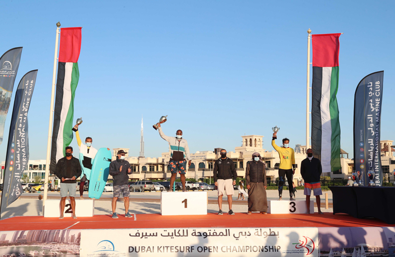 خطف المتسابق رقم 100 بطلنا سهيل عبدالرحمن المري الأضواء في اليوم الختامي لمنافسات بطولة دبي المفتوحة لألواح التزحلق على المياه بالمظلات (كايت سيرف) والتي نظمها نادي دبي الدولي للرياضات البحرية ضمن روزنامة السباقات في موسم 2020-2021 وعلى مدار يومين في شاطىء نسناس.