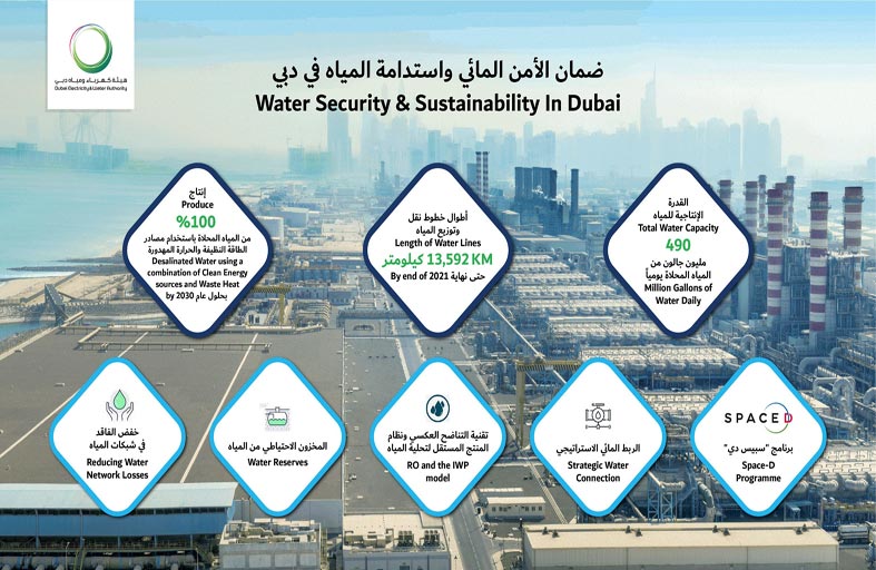 أسهمت البنية التحتية المتطورة التي تمتلكها هيئة كهرباء ومياه دبي واعتمادها الابتكار وأحدث أدوات استشراف المستقبل والتخطيط العلمي السليم في تمكين الهيئة من مواكبة الزيادة على الطلب في المياه في دبي وفق أعلى معايير التوافرية والاعتمادية والكفاءة.