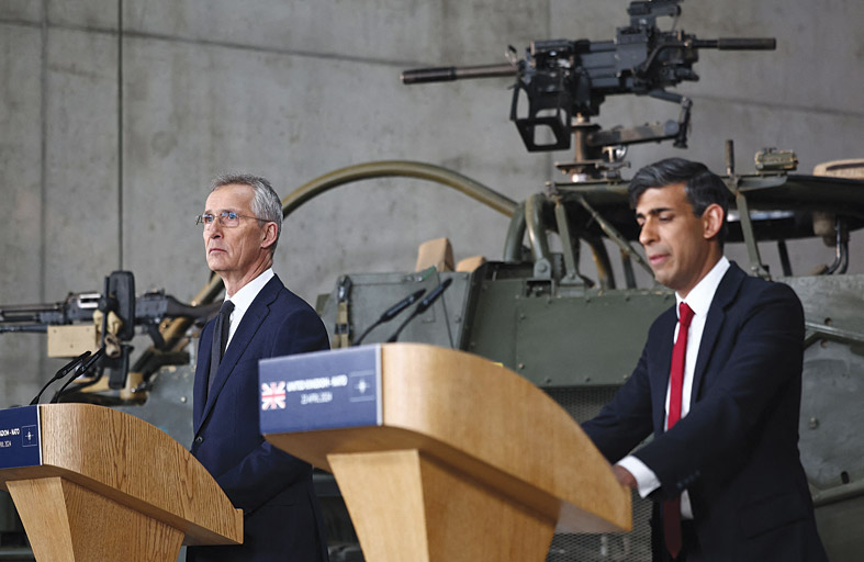 قال رئيس الوزراء البريطاني ريشي سوناك أمس الثلاثاء إنه سيجعل صناعة الدفاع في بلده على أهبة الاستعداد للحرب، معلنا عن تمويل إضافي طويل الأجل بقيمة 10 مليارات جنيه إسترليني (12.43 مليار دولار) مخصص للذخائر في ضوء الحرب الدائرة في أوكرانيا.