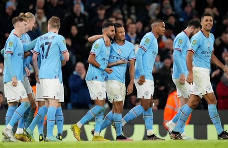 وجرد مانشستر سيتي غريمه ليفربول من اللقب الخميس عندما تغلب عليه 3-2 على ملعب الاتحاد في أول مباراة تنافسية لعملاقي كرة القدم الإنكليزية منذ فترة التوقف بسبب مونديال قطر 2022، فيما تخطى ساوثمبتون عقبة لينكولن سيتي من المستوى الثاني 2-1 الثلاثاء.