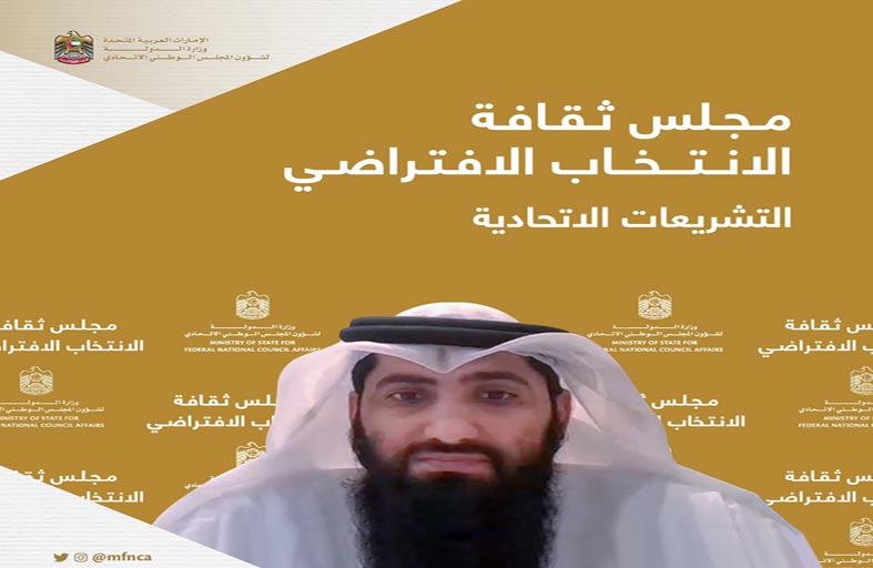 استضافت وزارة الدولة لشؤون المجلس الوطني الاتحادي في خامس لقاءاتها التفاعلية التي تنظمها ضمن مبادرة «مجلس ثقافة الانتخاب الافتراضي» الدكتور أحمد محمد عبد الله الشحي المختص بالتشريعات الاتحادية، الذي تحدث - عن بعد - عن أنواع التشريعات الاتحادية ودورتها ومراحل إعداد التشريع الاتحادي.