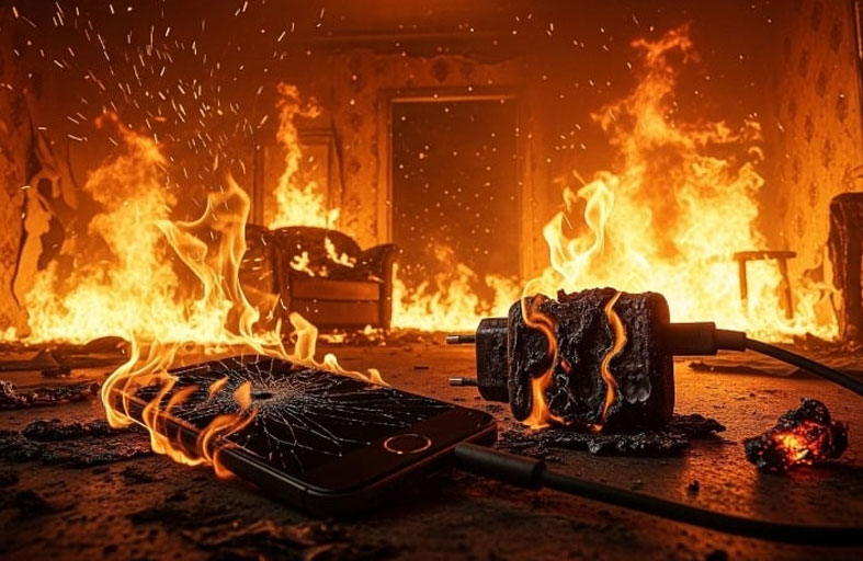 شاحن هاتف يشعل حريقاً هائلاً