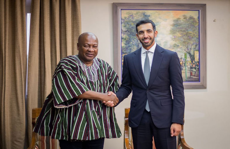 التقى معالي الشيخ شخبوط بن نهيان آل نهيان، وزير دولة، فخامة جون دراماني ماهاما ، رئيس جمهورية غانا، في العاصمة أكرا، حيث جرى بحث العلاقات الثنائية بين دولة الإمارات وغانا في مختلف المجالات ذات الاهتمام المشترك.