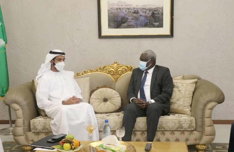 شخبوط بن نهيان يلتقي في انجمينا رئيس مفوضية الاتحاد الأفريقي