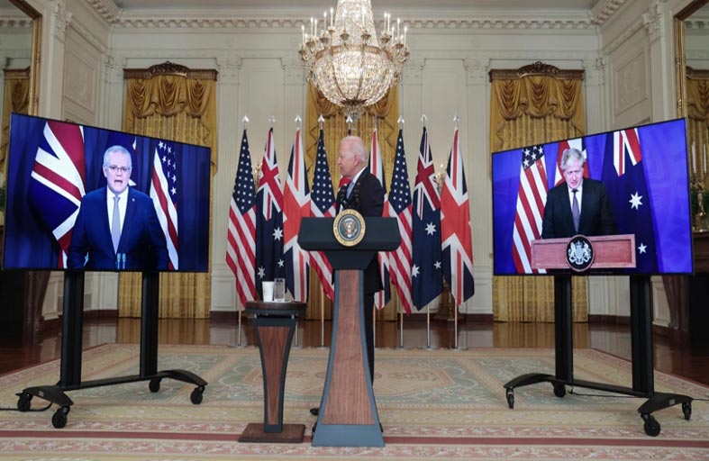 أطلقت الولايات المتحدة شراكة أمنية واسعة النطاق مع أستراليا وبريطانيا في منطقة المحيطين الهندي والهادئ في مواجهة الصين، تتضمّن تسليم كانبيرا غواصات ذات دفع نووي، ما اعتبرته بكين صفقة “غير مسؤولة».