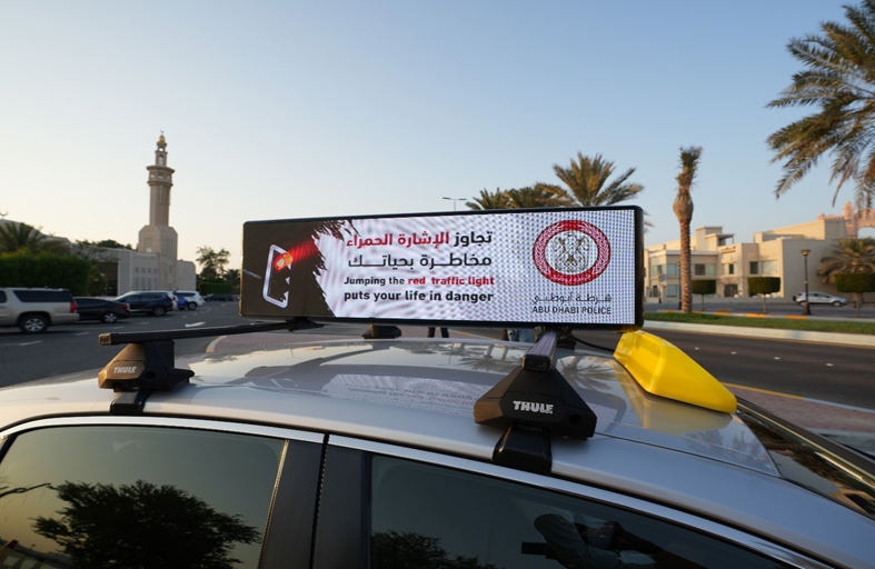 شرطة أبوظبي تبث «حملاتها التوعوية» عبر اللوحات الذكية على مركبات الأجرة