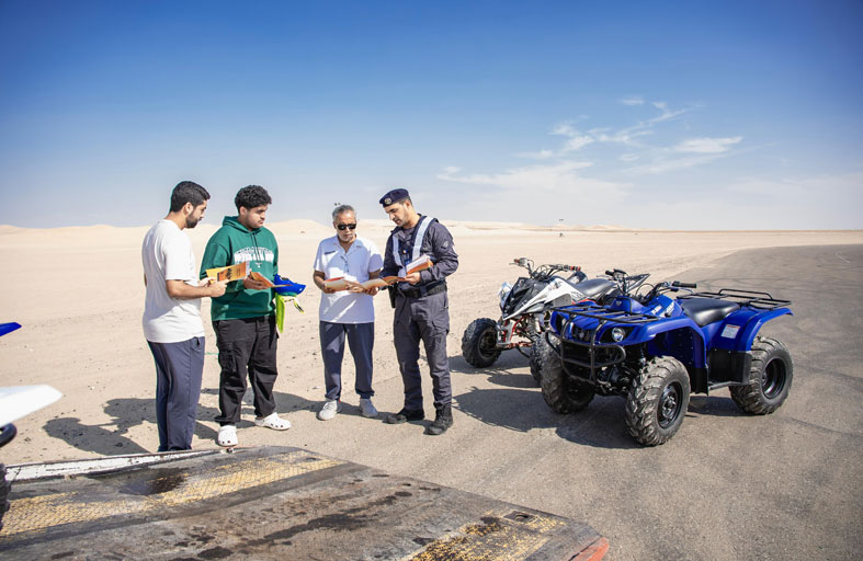 وتضمنت الحملة توزيع كتيبات توعية على سائقي الدراجات النارية ومستخدمي السكوترات والمرتادين وأسرهم في المناطق الرملية، تتضمن باركود يتم مسحه عن طريق كاميرا الهاتف المتحرك، ويتحول إلى فيديو توعوي يحث السائقين على الالتزام بقواعد السير والمرور حول السلامة المرورية وعرض أفلام توعوية رقمية مرورية.