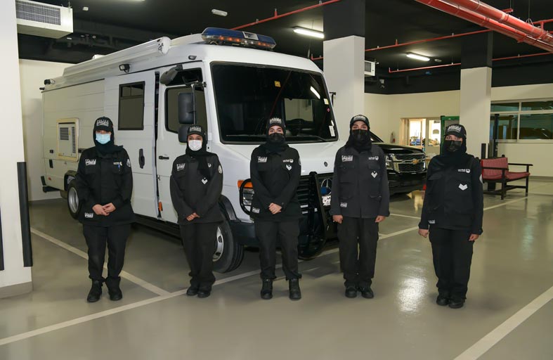 من جانبها، قالت الرقيب نوف محمد ابراهيم: إن الإدارة العامة لأمن الهيئات والمنشآت والطوارئ، حرصت بشكل كبير على تطوير مهارات الفريق ورفع إمكانياته عبر الدورات التدريبية والبرامج التخصصية وورش العمل المتخصصة والمتنوعة، ما أسهم بشكل كبير في رفع مستوى الكفاءة في المهام الموكلة للفريق، وإن اشراك الفريق مع الفرق التخصصية أثناء فترة التعقيم الوطني ساهم في إكساب فريق العنصر النسائية مهارة التعامل مع الفرق المختلفة والمتنوعة والتخصصية أثناء الأزمات والمخاطر.