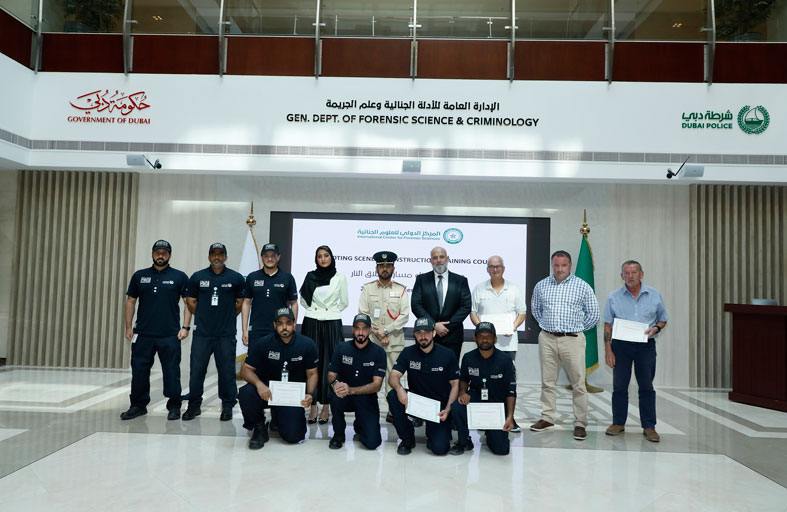 شهد سعادة اللواء أحمد ثاني بن غليطة، مدير الإدارة العامة للأدلة الجنائية وعلم الجريمة في شرطة دبي، ختام دورة "إعادة بناء مسارح إطلاق النار" التي نظمها المركز الدولي للعلوم الجنائية في شرطة دبي، بحضور المقدم الدكتور خبير راشد الغافري، مدير المركز.