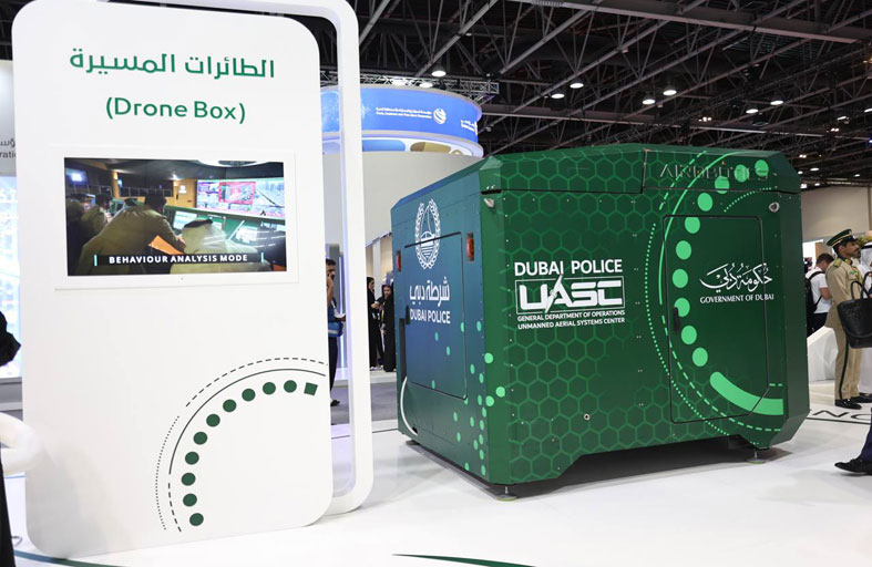 وعرضت القيادة العامة لشرطة دبي عبر منصتها بمعرض جيتكس العالمي للتقنية 2022، أحدث التقنيات التي تحتوي على تكنولوجيا الذكاء الاصطناعي والمستخدمة في العمل الميداني، ومنها منظومة "الدرون بوكس" (drone box) وهي عبارة عن منصة لإطلاق الطائرات المسيرة المؤتمتة، والتي تهدف إلى خفض معدل زمن الاستجابة للحالات الطارئة جداً، إضافة إلى المساهمة في الكشف عن الجريمة.