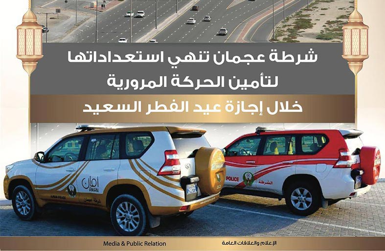 استكملت إدارة المرور والدوريات بالقيادة العامة لشرطة عجمان خطتها الأمنية المتكاملة لتعزيز الأمن والسلامة وتأمين الحركة المرورية للمواطنين والمقيمين والزوار في كافة أرجاء الإمارة خلال إجازة عيد الفطر السعيد.