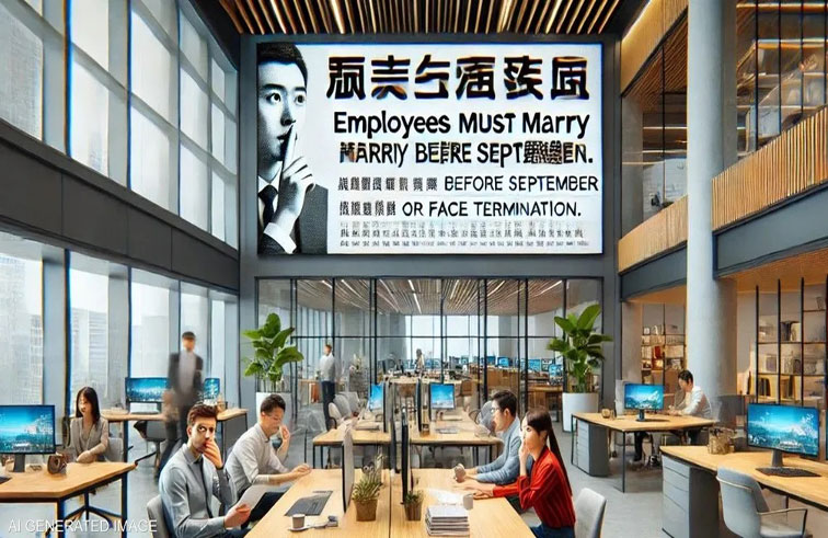 وطلبت الشركة من موظفيها العازبين والمطلقين الذين تتراوح أعمارهم بين 28 و58 عامًا "الزواج والاستقرار" بحلول نهاية سبتمبر من هذا العام.