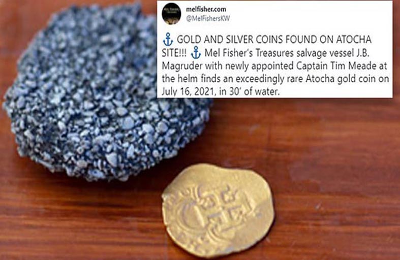 عُثر على عملة ذهبية نادرة من "أغلى حطام سفينة في العالم"، "نويسترا سينورا دي أتوتشا" المشؤومة، قبالة فلوريدا كيز. واكتشف زاك مور، المهندس في شركة Mel Fisher's Treasures، العملة الذهبية في 16 يوليو، لتكون الرقم 121 التي عُثر عليه من الحطام والأول منذ عام 2001.