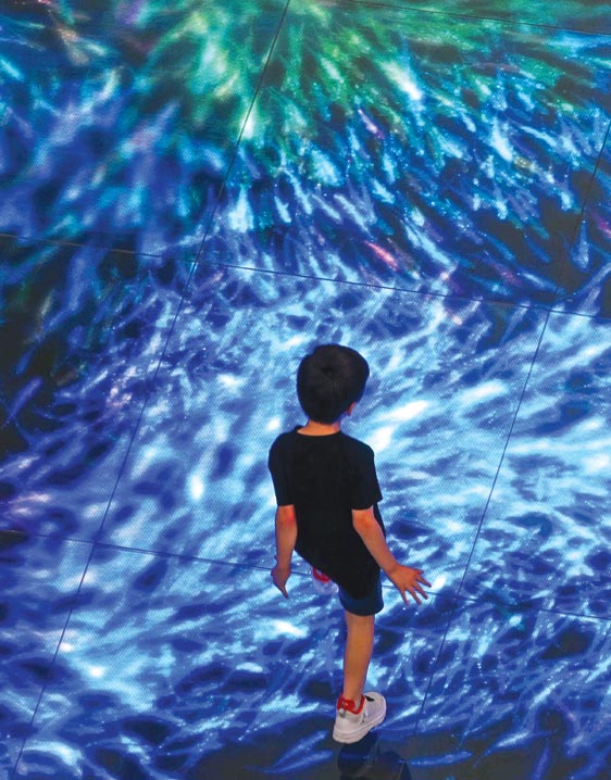 صبي يمشي في عرض افتراضي للأسماك بمركز تجاري في سنغافورة (ا ف ب)