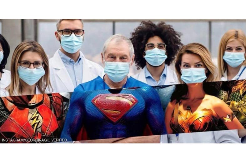ونشرت جورجينا، على موقع إنستغرام، صورة لأطباء وهم يرتدون كمامات، بينما تم تعديل وسط الصورة ليظهروا كأبطال شخصيات العديد من الأفلام العالمية والرسوم المتحركة "الخارقين" والمشهورين بأقنعتهم وأزيائهم.