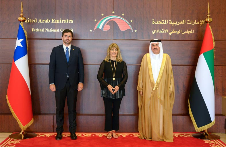 بدورهما وجه رئيسا مجلسي النواب والشيوخ التشيلي دعوة لمعالي صقر غباش رئيس المجلس الوطني الاتحادي لزيارة جمهورية تشيلي، بهدف تعزيز وتطوير العلاقات التي تربط البلدين والشعبين الصديقين في مختلف المجالات، والدفع بالعلاقات البرلمانية إلى آفاق أرحب، بما يعكس الدور المهم للبرلمانات في تسهيل عمل الحكومات، لاسيما في سرعة إنجاز الاتفاقيات وتطوير التشريعات في ظل ما يشهده العالم من تطورات تتطلب تعاون وتكاتف مختلف المؤسسات والمنظمات على الصعد الوطنية والدولية.